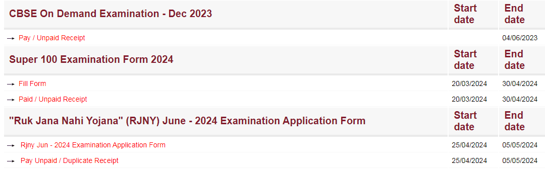 - In the new window, click on the section “Ruk Jana Nahi Yojana” (RJNY) June – 2024 Examination Application Form” to open the RJNY Online Application Form.